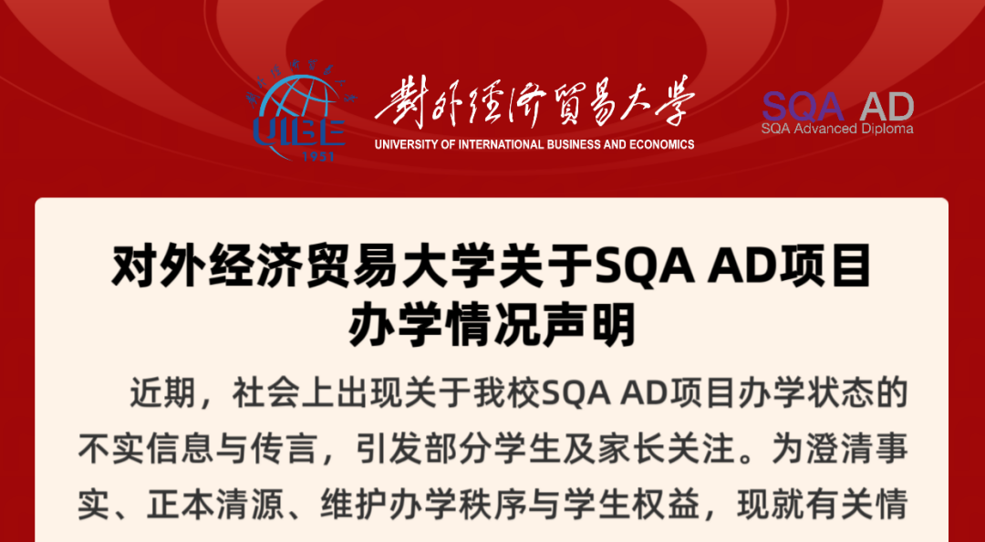 官方声明 | 对外经济贸易大学关于SQA AD项目办学情况声明