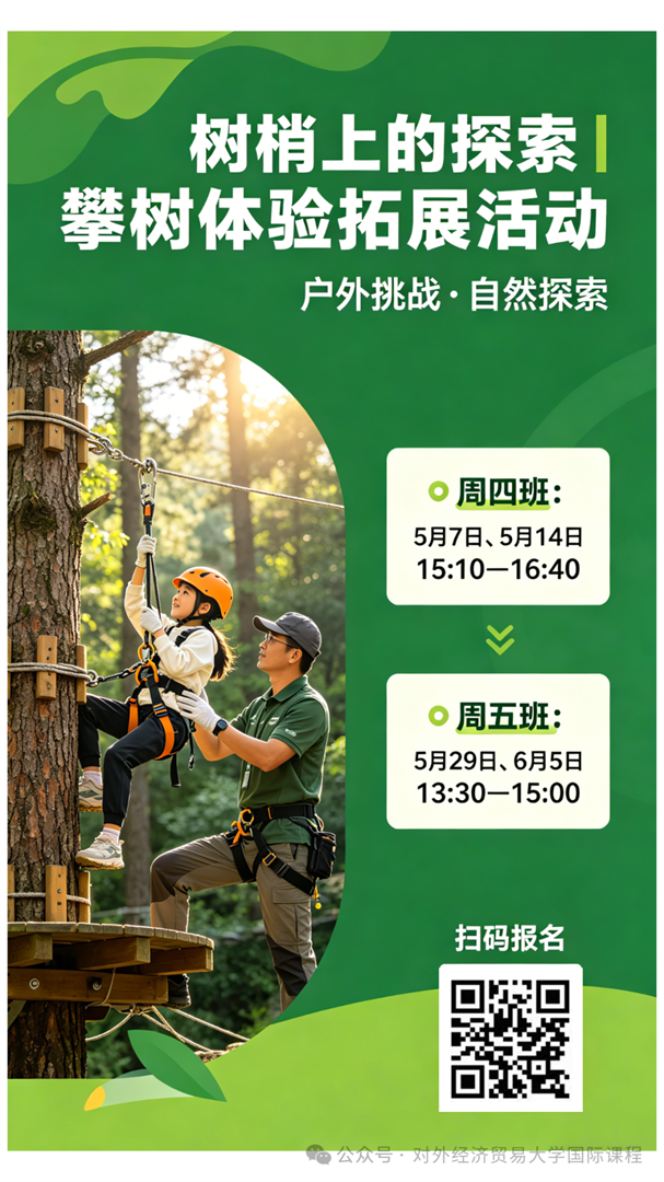 学生活动 | “树梢上的探索”攀树体验拓展活动报名的通知