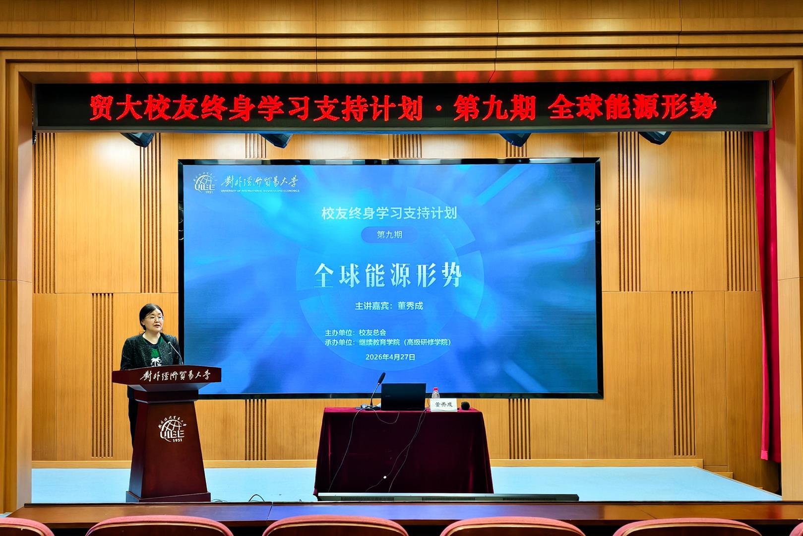 (数字发展部/稿)建校75周年之际,贸大校友终身学习支持计划系列活动于2026年4月27日下午邀请我校中国国际碳中和经济研究院执行院长董秀成教授以“全球能源形势”为题开展专题讲座,贸大各地校友及在校师生通过线上或线下方式参与学习。